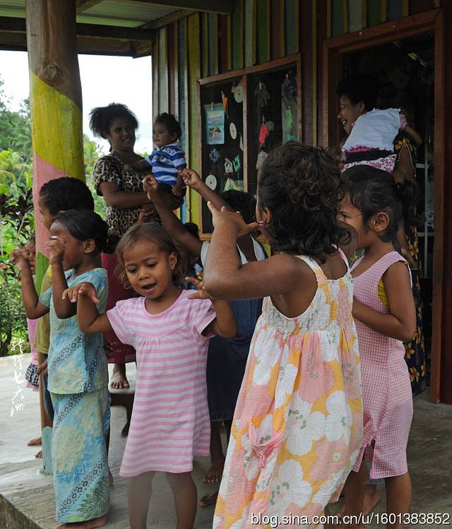 小村子很美丽,到处是椰树和鲜花,我们参观这里的幼儿园和村民的手工作坊,这么小的村子办起幼儿园,让我有几分惊讶。这里的孩子天真可爱,他们用歌舞欢迎了我们。