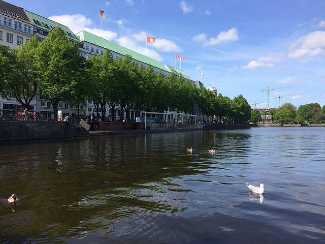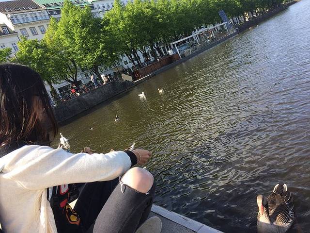 旁边就是内外阿斯特湖,湖边风景不错,可以坐下来慢慢欣赏或者租个船玩儿。我们买了面包,还喂了河里的野鸭和天鹅,很可爱的!