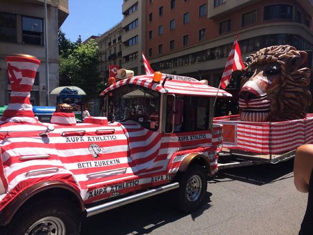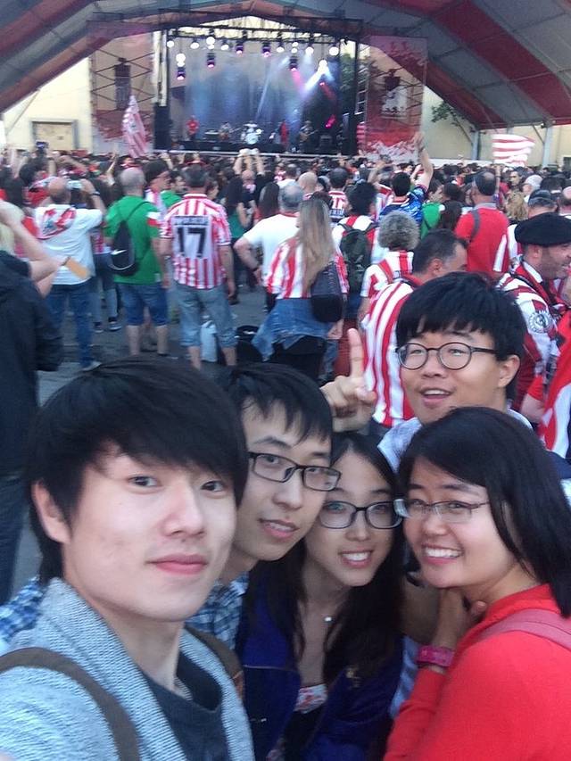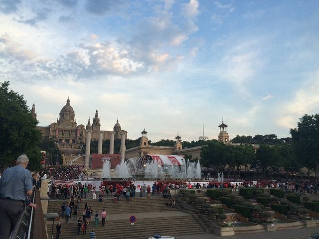 因为转一天有巴萨和比尔巴勒的球赛,所以整个城市都在狂欢,球迷们租了花车,包了广场的场地,一起开现场摇滚party,每个人都在跳舞 喝啤酒,真的超级热闹超级开心,我们也跑到广场上跟人家一起疯玩,真是被这个热情的国度感染了。