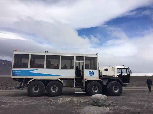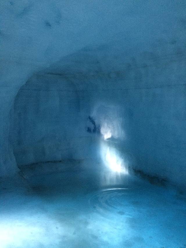 吃完饭到了朗格冰川,这是冰岛第二大的冰川,冰岛在这片冰盖下面挖了一个人工冰洞,是新的景观,也是世界上最大的人工冰冻,500米的隧道。这里要讲一下星际穿越里外星球的镜头是在冰岛的瓦特纳冰川取景的,瓦特那冰川也是欧洲最大的冰川。所以!这一路上我看见冰川景色就感觉自己分分钟不在地球上了。真的太震撼了。车开到冰川脚下就要换专门上冰川的车了。