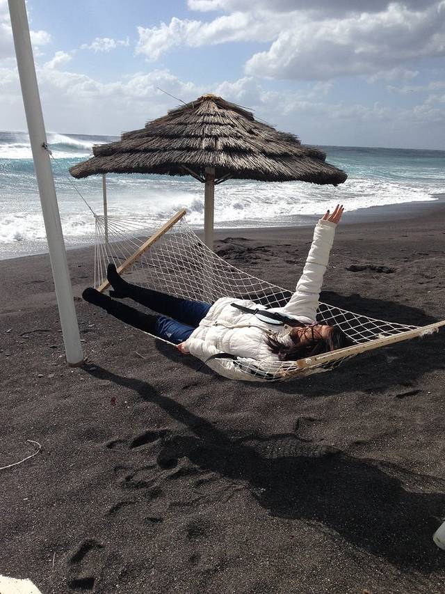 早上8点就到了圣托里尼。到了这里终于明白了船取消的原因,虽然雅典那边太阳很大,但是圣托里尼一直阴天,下小雨,而且岛上整整刮了一天时速60公里的大风,走着都很费力的那种大风。在圣托里尼游玩还是推荐自驾,或是包车,或者报一个旅行团。岛虽然不大,但都是山路,两个景点之间直线距离不远但没有路,走公路要多绕4、5公里。岛上的公共交通不是那么多,而且没有天票,单独买票也小贵。岛上的小蓝房子固然很多,但是要找对地方,因为景色看反了,会发现圣托里尼上面就是一个光秃秃的山。。最北边的地方很漂亮,坐车可以到,很多经典的小蓝房子在那边取景的。这边店铺里的人都会讲中文,而且会讲的很多= =我们这样恶劣的天气都在岛上碰上了无数中国人,可想而知这是多么火热的旅游地。黑沙滩也很好,在岛的东南部,不过还是天气原因,海边狂风大作,卷着沙子往脸上扑,眼睛都睁不开,这也是独特体验了。最搞笑的是晚上8点45的飞机,但是天气实在是太差了,直到下午才出太阳,但是也还在刮风。我们下午4点多就开始往机场赶了。这里还有一个非常有趣的原因,因为听闻意大利和希腊治安很差,我们每人只带了200欧的现金,这时已经没钱了,也就是说坐不起机场大巴了,又没办法刷卡,能取钱的卡我们没有带。于是决定走到机场,好在也不远只有4公里,跟着google导航走到一片大旷野,发现对面有三只并不友好的驴,看起来很凶,我们被迫改道,多绕了2公里。看见机场的那一刻感动得都要哭了,背着超重的包,顶着可以和北京媲美的大风怒走了一个多小时。然而为了便宜,我们的机票是转机,在雅典中转整一个晚上,然而雅典机场周围只有两三家酒店,奇贵无比,于是又睡了一夜的机场。真的第二天回慕尼黑的飞机上,整整三个小时,睡得不省人事。