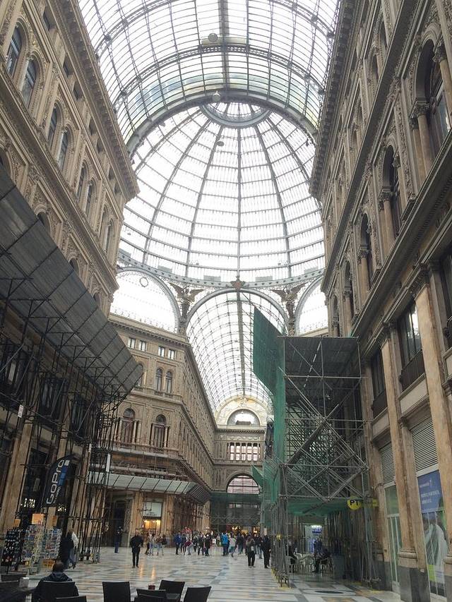 在岛上玩儿了大半天下午4点钟回到那不勒斯港口,港口旁边是蛋堡。走过蛋堡沿指示牌走到翁贝托长廊,这是那不勒斯有名的购物街,在购物街这边就处处有指示牌啦,可以看到但丁广场,国家考古博物馆。这一天的时候我已经拒绝了所有的披萨和意面。