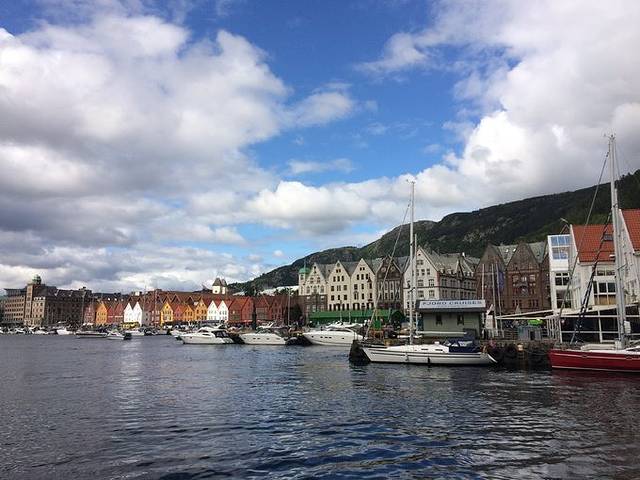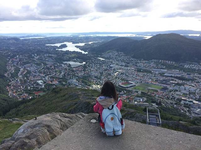 旁边的港口也很迷人,海风带着一些腥腥的海草味吹过来。随后去了2km以外的Ulriken山,可以从fish markt坐观光巴士到,就是贵。也可以坐普通公交2、3、12路到Haukeland sjukehus站下车沿着指示牌走即可。缆车来回150克朗。山上的风景真的太漂亮了,后面是群山,前面可以俯瞰卑尔根全景。回到城区以后随便逛了逛,街头有很多音乐表演,很棒。