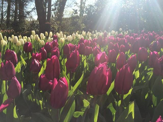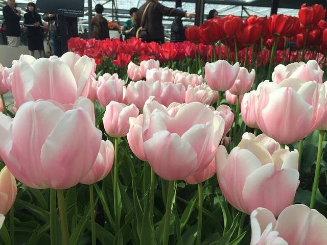 终于熬到早上坐了6点多的火车奔赴海牙,暖和幸福到飞起了,睡得东倒西歪两个多小时到了海牙。然后去看郁金香,最好的时节是四月中到五月中,很多人都从阿姆斯特丹到库肯霍夫公园看郁金香,但因为我们后面阿姆斯特丹的时间不太够,就从海牙去了,其实无所谓,郁金香公园在北边的阿姆斯特丹和南边的海牙中间,从哪过去都很方便。从海牙的火车站买了票到莱顿,往返5.1欧,莱顿火车站门口的广场上坐公交854路直达库肯霍夫公园,车次很多,大家都是奔着郁金香去的。想说真的太漂亮了,各种品种的郁金香,什么颜色都有,不光有室外的花田,也有室内的花,还有花车游行,表演之类的,还有很多小动物,羊啊草泥马啊之类的,很乖的,还可以摸,门口的冻酸奶也很好吃= =好喜欢。