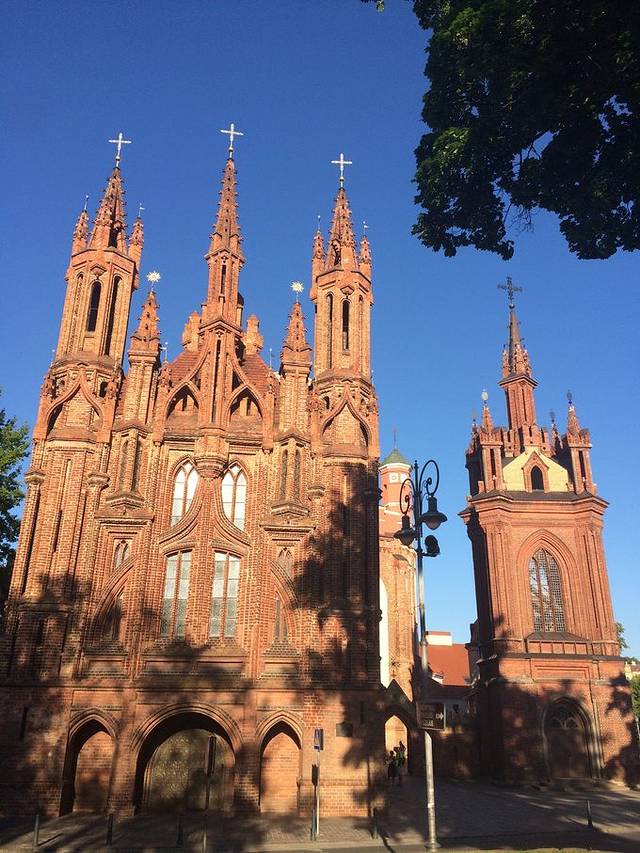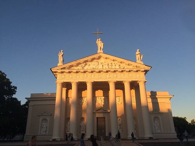 一般游览维尔纽斯的起点也都是黎明门。黎明门可以从右手边的楼梯上去,上面是一个祈祷台。啊对了,我朋友在等我来的时间里还跑去看了克格勃博物馆,就在黎明门附近,据他讲可牛逼了= =。旁边还有三座教堂,可以进去参观。这边人很虔诚的,你进去了他会跟你讲你也要画十字。沿着主路一直走,走到广场就是立陶宛的市政厅。沿路向左拐是维尔纽斯大学和总统府,顺着地图继续走是圣安妮教堂。回到主路上继续向北就是维尔纽斯大教堂了,和他的大公府。维尔纽斯老城很小,也没有什么特别固定的景点,除了黎明门、圣安妮教堂和维尔纽斯大教堂。悠闲地在城里逛,散散步,看看路边的建筑,和西欧国家的建筑不太一样,体会一下当地人的生活,坐下来喝点东西就够了。
