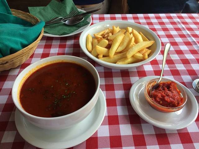 下了山就是链子桥,也是多瑙河九桥我感觉最值得看最好看的一座桥。我实在太饿了就在山脚吃了顿饭,旅游景点的饭必然是要贵一点的但实在是饿昏了头。土豆牛肉汤是特色菜,超级好吃,我只点了汤和一份薯条都没吃完。。然后去买了个煎饼,在地铁M2 Battyhany ter站,出去就是,有甜的咸的,我买了火腿味的,看起来像鸡蛋饼然而并没有鸡蛋饼好吃= =一个饼300多福林。