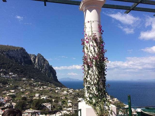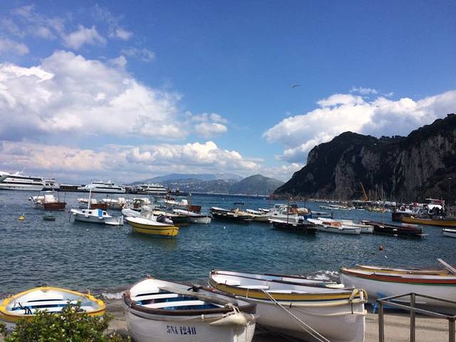 早上出发去卡普里岛,在那不勒斯港口坐船,那不勒斯有两个港口,也要看好是哪个港口,现场买票就可以,有很多公司都运营到卡普里的航线。卡普里最有名的是蓝洞,下了船在码头旁边的公交车站坐小巴士到安娜卡普里下,真的美得摄人心魄那种,我朋友去年去过给我安利,所以我加了这段行程在里面,但可惜的是时间太不巧了,洞口涨潮了,没有看到。每年夏天的时候看到的几率比较大,在中午11点到下午2点这段时间。所以我们就只在卡普里岛上逛了逛,坐了缆车,这里的海更美。岛上还有黄洞白洞之类的,但是没那么有名。