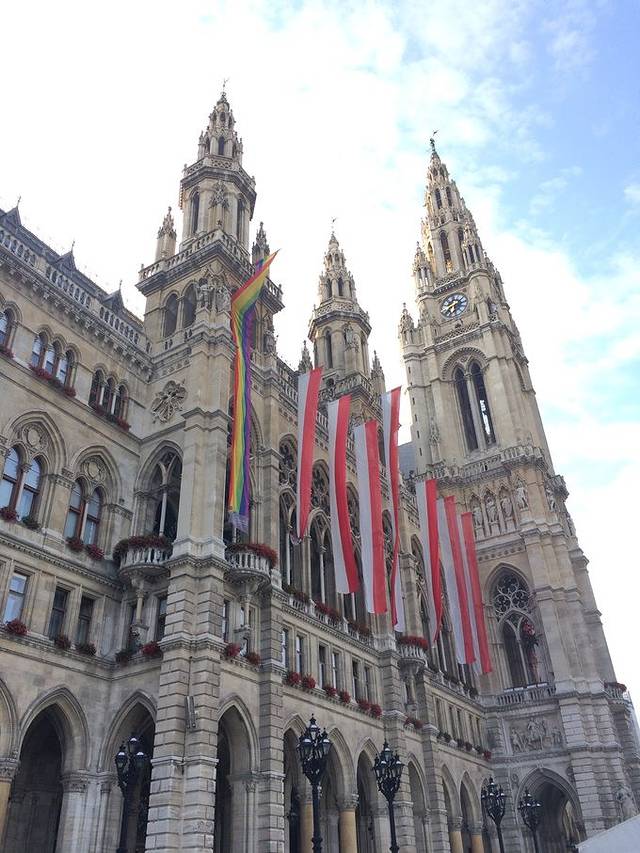 我定了西火车站旁边的一家hostel,到了先去放东西。买了地铁天票7.6欧去市内逛。先去了靠西边的市政厅、国会大厦、霍夫堡皇宫。地铁U2 Rathaus站。