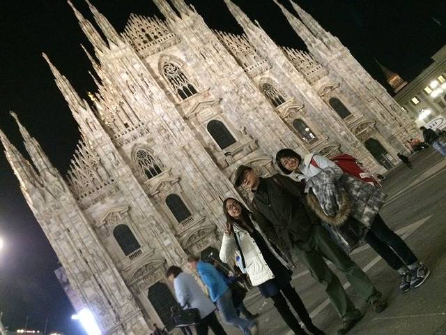 晚上6点10分从慕尼黑起飞,7点25到米兰。米兰可看的就是大教堂,旁边的奢侈品街,还有最有名的最后的晚餐。最后的晚餐需要提前预约,人很多,不允许拍照,我们在米兰只停留一个晚上所以没有去看。从机场到了市区我们先去火车站取转一天的车票,在这里碰到了可爱的中国老乡,一位和善的大哥,做服装设计师的北京人,超级有趣,给我们讲了好多段子,还带我们一起玩,给我们讲意大利的各种事情。他口中说的意大利真的超级危险= =受经济危机影响太大了。各位去意大利的时候真的要小心谨慎呀!我们晚上去的米兰大教堂,然后看看旁边的奢侈品街,据说是世界上最早的奢侈品街。之后就回hostel休息了。