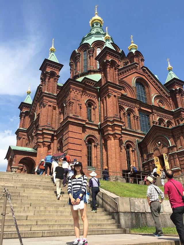 东边是乌斯佩斯基大教堂。这两个教堂一白一红,也是赫尔辛基的典型建筑了。