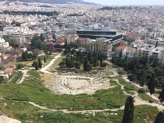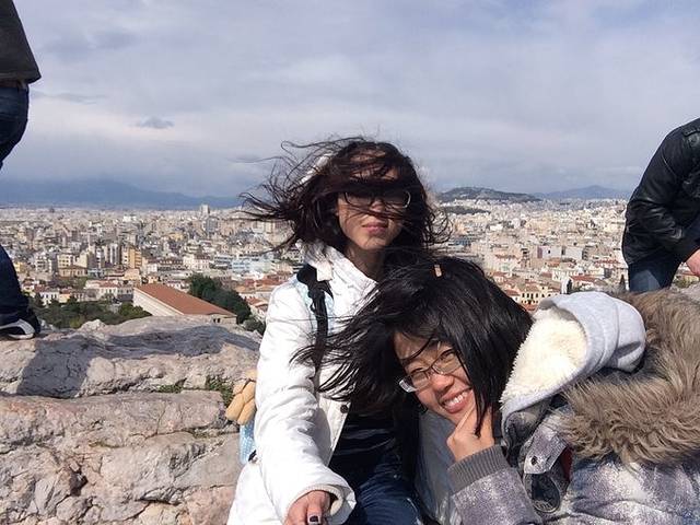 上午十点半的飞机飞雅典。雅典比意大利靠东,晚一个时区。我简直太喜欢雅典了,所有的景点都在卫城套票里面,然而卫城套票对欧盟学生免费。玩雅典的时候真的一分钱都没有花。雅典阳光很好,下了飞机我们就直接去了卫城。这个地铁站都十分牛逼,摆着各种出土文物。因为是以前的城市,很破旧,而且在山上,所以先要爬山到最上面,路不是很好走,山上的风巨大无比。但是帕特农神庙真的太美了,看着山下的酒神剧场、阿迪库斯剧场,周围的雅典娜胜利神庙、阿尔忒斯神庙等等真的会由衷赞叹,这真是西方文明的起源啊!太恢弘了!在山上还能俯瞰整个城市。