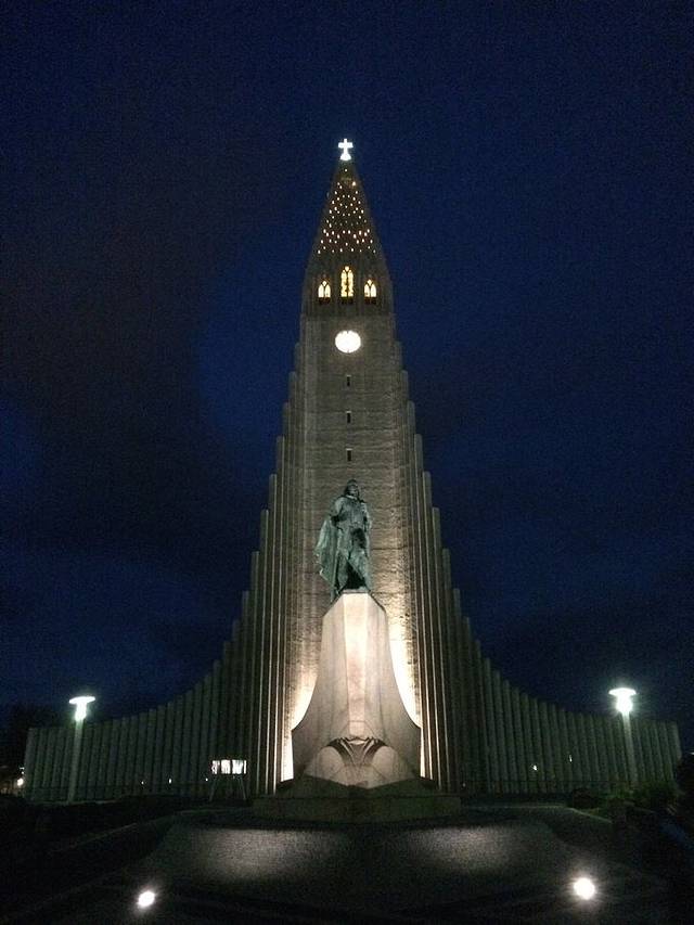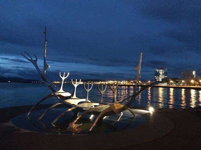 晚上11点半回到雷克雅未克市区,本来想看看午夜的太阳,可惜这天有些阴天,天就黑了下来。不过这时候能看到夜景,又沿着海岸线走,还看了亮灯的大教堂。