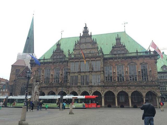 早上开始逛不来梅,不来梅城市很小,说这个城市相当于中国的天津==(恩没错我的家乡。我感觉是这样的,首先离首都很近,其次,是自治市,再次,没什么好玩儿的,只是不来梅人没有天津人逗比哈哈哈。因为德国城市看了很多,总结出来德国城市有三宝:广场、市政厅和教堂,大城市再加个博物馆。不来梅就是典型的这样一座城市。从北边的火车站出发,跟着地图一路向南走,完全不需要买车票。