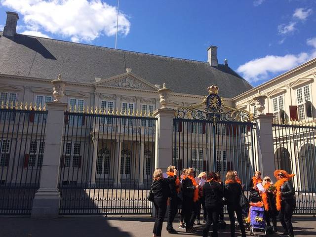 回到海牙市区以后跟着指示牌走到海牙广场,国会大厦与骑士厅还有荷兰女王宫。女王如果在家的话会升旗国旗,门口有很多穿橙色衣服的奶奶在唱歌,很开心的。