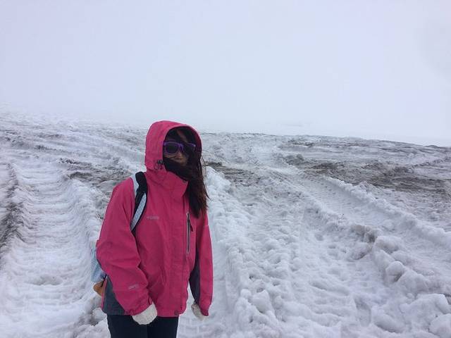 一路上到处都是白茫茫的,天和地相接,一定要带上墨镜,周围一片白。风巨大无比,开到冰洞门口,要穿专门的防滑链。