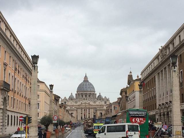 下午冒着大雨去梵蒂冈,梵蒂冈的西斯廷教堂有米开朗基罗的创世纪,很推荐,但是我们去的那天由于是复活节,梵蒂冈举行很盛大的宗教仪式,所以人很多,雨又很大,没什么心情排队了,就放弃了,也有些可惜,梵蒂冈寄明信片比意大利要贵。