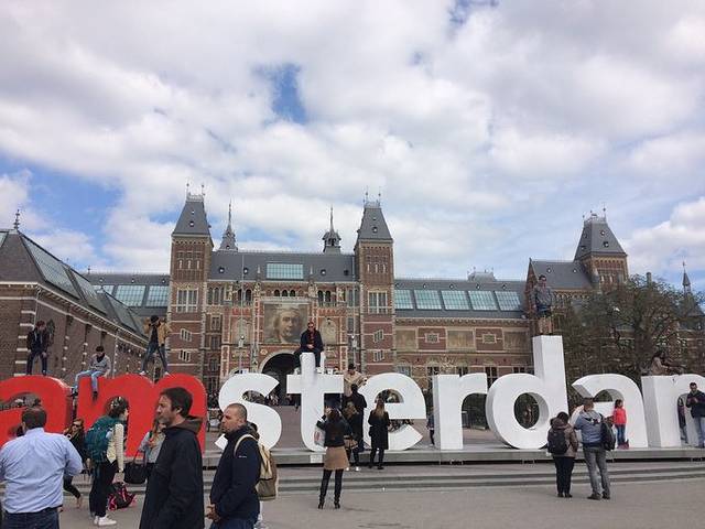 回来之后下车直奔国立博物馆和梵高美术馆,交通票买的24小时7.5欧的,在火车站门口的服务中心买,注意看好交通公司,有的公交车不可以坐。血泪经验:一定要提前在网上订票,又便宜又不用排队,人很多,国立博物馆还好,尤其是梵高美术馆,我们排了快两个小时队伍都不怎么动于是放弃了。这事情都怪我,我觉得欧洲没那么多人不用提前买票什么的= =没想到。。。国立博物馆很厉害的,可以逛一天!很多国宝级的作品都在这里,最有名的是伦勃朗的《夜巡》。博物馆门口就是标志性的amsterdam的大牌子,超多人在这边合影。