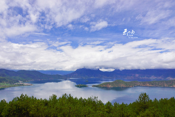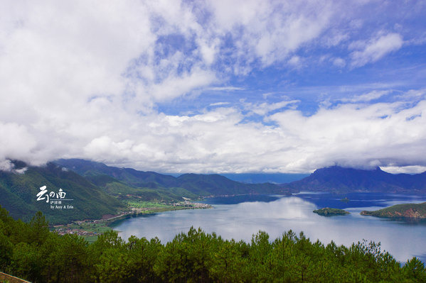 泸沽湖第一印象,从山顶俯瞰,真是美得让人窒息,那份静谧,仿佛此刻周围的空气都已静止。