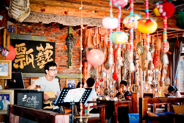 丽江有不少街头艺人,晚上会在各家酒吧弹唱。街头很多小店也都卖着他们的唱片。