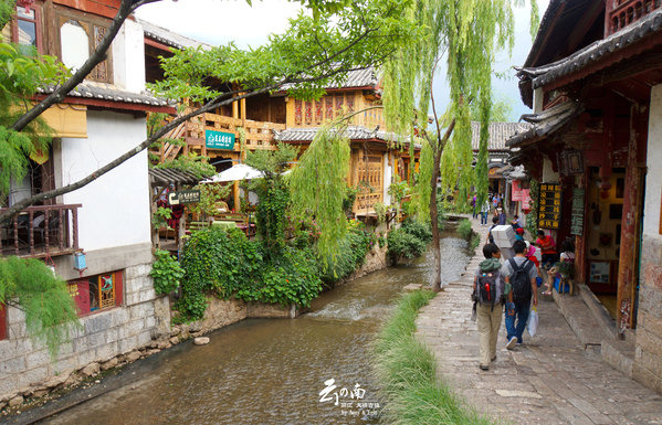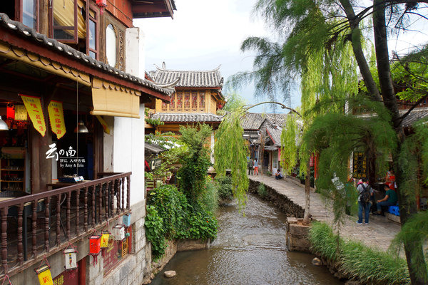 到了大研古镇,才发现古镇内的路都是坑坑洼洼,拖着行李极其不便,好在箱子结实,没被拖坏。