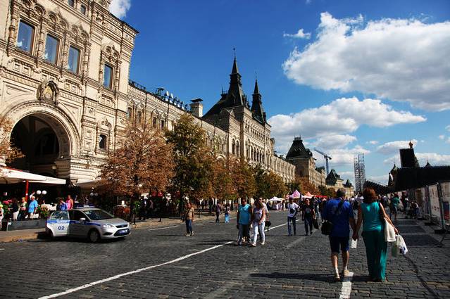 到酒店放下行李,弃车步行,抬头就见红场