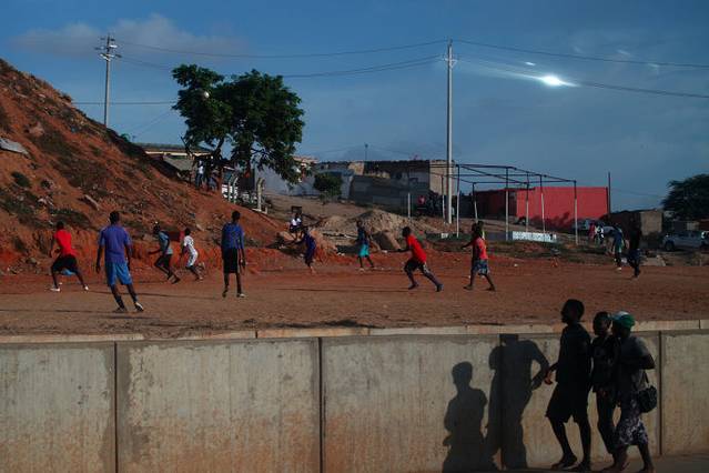 道路旁边踢野球的安哥拉少年