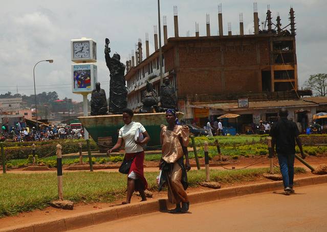 坎帕拉市区街心雕塑,被黑塑料纸包裹着