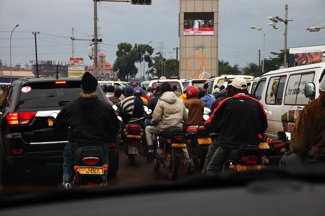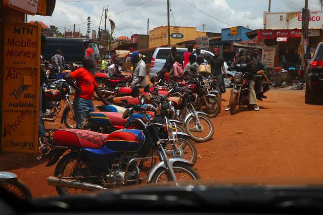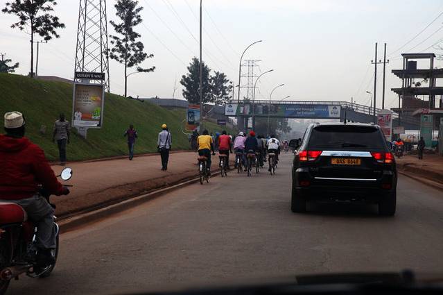 骑自行车上班的乌干达人