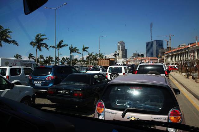 安哥拉国家银行,从拍照的地方走到这个建筑门口花了快半个小时时间,下一个500米用了一个小时时间,肠、胃、肾弱的朋友,最好别出门了,非憋死在车里不可。