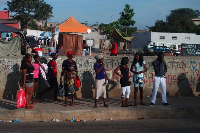 等车的人,在罗安达只看见过一辆大巴士,更多的是类似金杯面包车的丰田小公共,还有黑摩的:)