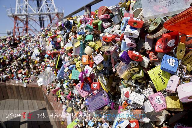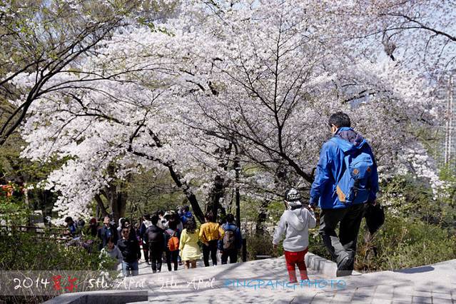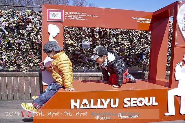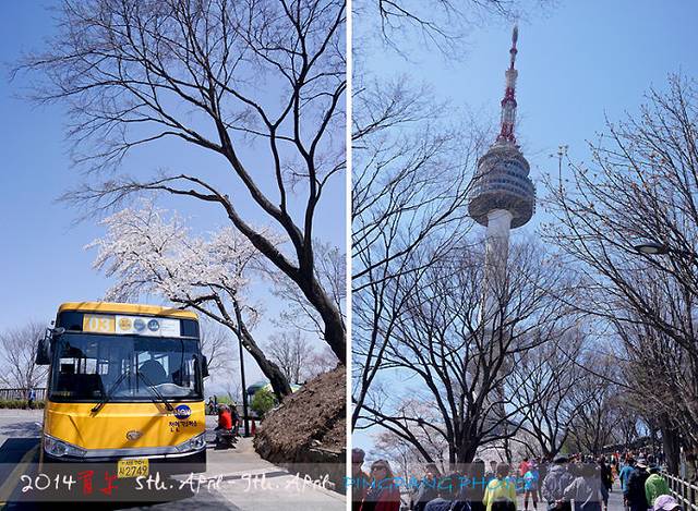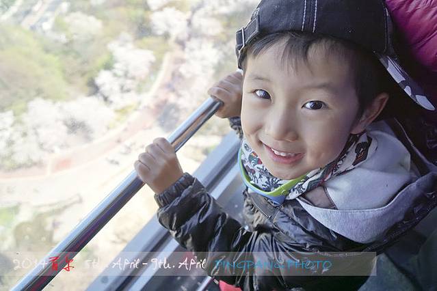 南山首尔塔,是韩国首尔的象征、地标性建筑——“N首尔塔”也在南山公园内,取南山(namsan)的N和“New(新)”、“Nature(自然)”之意。据说装扮一新的N首尔塔最佳看点是夜间照明秀,每天晚7点到12点,以“首尔之花”为主题,用光的变化表现花开过程,塔身每小时整点变换一种不同颜色。但是对于一向没有夜生活的孩子们,选择白天上山,目的只为:坐缆车、观景、呼吸新鲜空气,另外,或许会邂逅樱花。