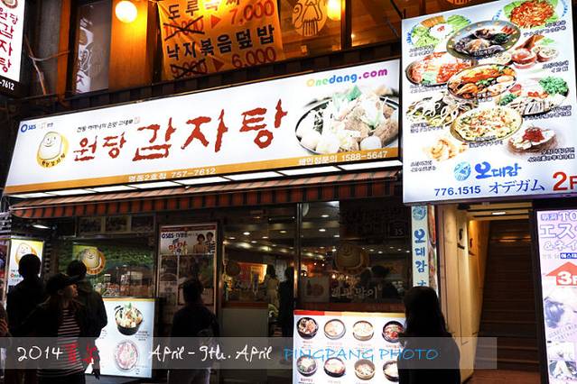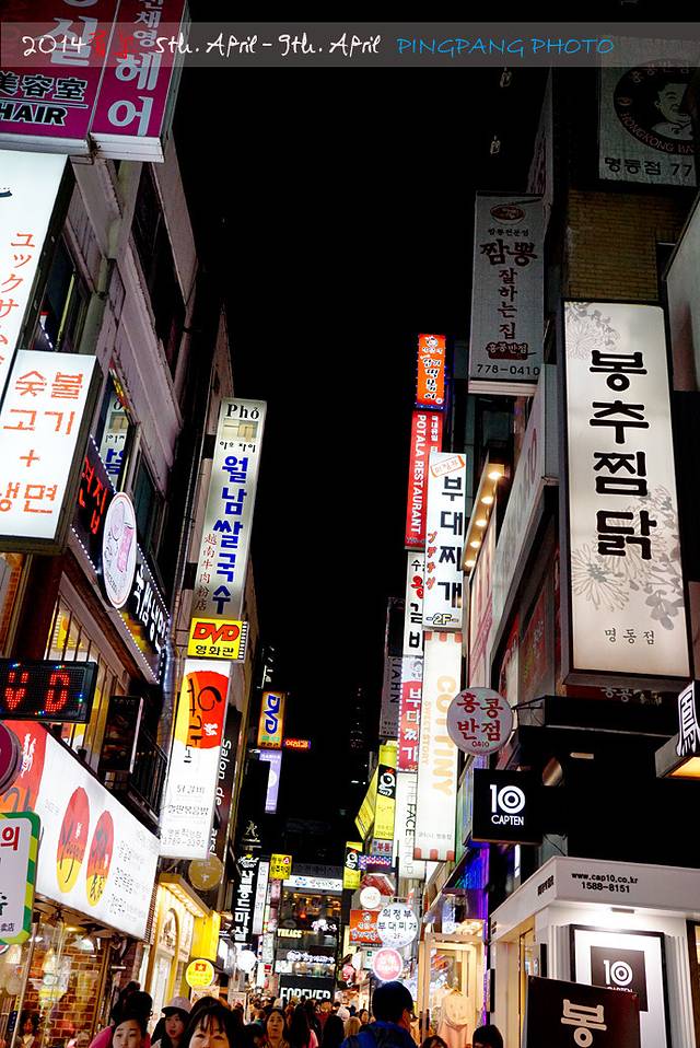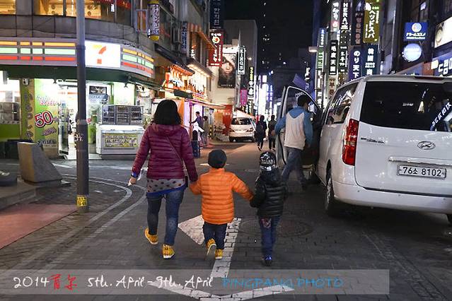 回到酒店办理入住、放下行李、更衣稍事整顿,出门觅食。时间已近8点。首尔白日小雨飘飘、晚上温度还是比较低的。超薄羽绒服套上,刚刚好。