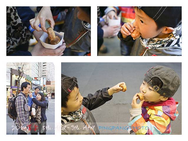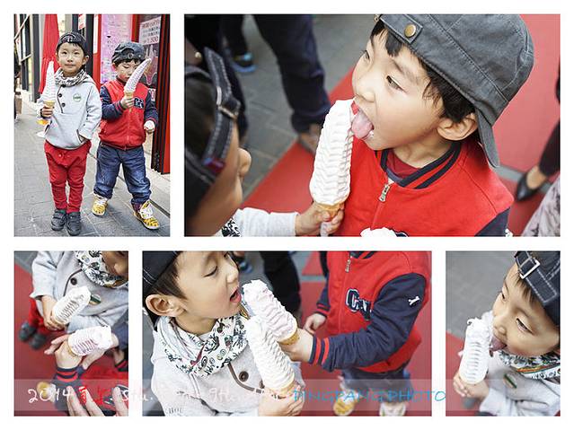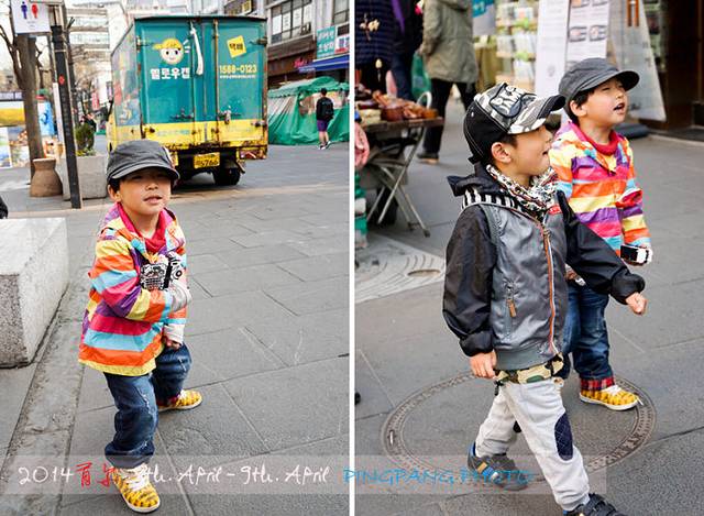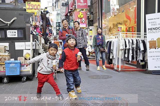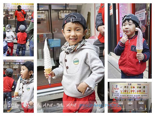 来一张明洞冰淇淋街拍。嘿嘿,孩子们手里有好吃的时候,那是相当地配合啊。