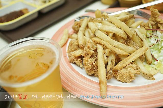 啤酒炸鸡好大份,炸鸡果然好吃,但是让爸爸们拿土豆当主食还是稍微有点不适应。不过,还有孩儿们剩的米饭面条呢,哈哈。