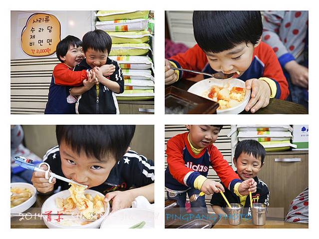 除此之外,一份拌饭定食,一份海鲜汤、鸡蛋卷。孩子们辣的不辣的统统吃的喷香,土豆汤香浓微辣,孩子们边吃边喝冰水解辣,哈哈。