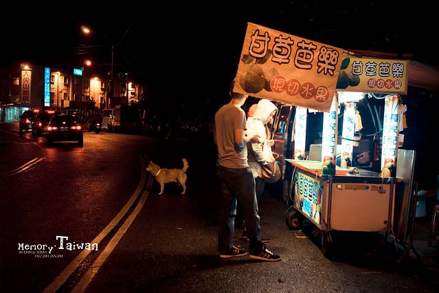 商场外的夜市街上还比较冷清,估计晚上会很热闹。白天开着为数不多的摊位,这家黑猪肉香肠非常诱人。价格是100台币3支,每一支的份量和内涵(真正肉的含量)估计顶的上大陆各处可见的所谓台式香肠的4-5根,您再算算价钱…………而且味道超正!