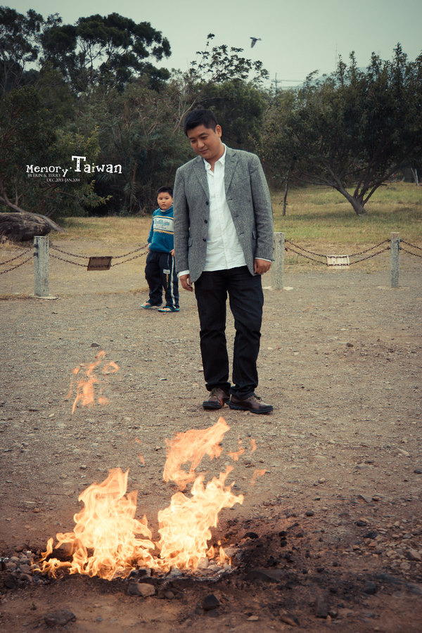 此景名为出火口,大概是地下甲烷气体不断涌出所致,蒙蒙细雨中也不尽不灭。