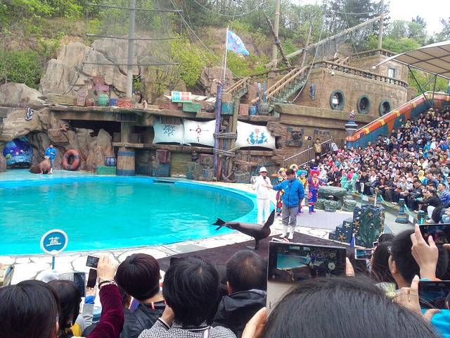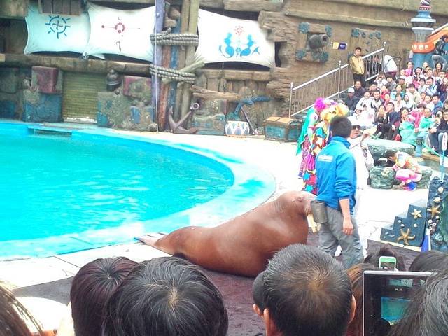 欢乐剧场上演的爆笑表演,绝对令人难忘。海洋馆的剧场主演肯定是海洋动物了,表演是一场人与动物的较量大战。比赛双方是可爱海狮、海象、还有可爱的“小丑”。双方以对抗的形式上演了一幕幕令人捧腹的桥段。动物明星们聪明活泼,与“小丑”们配合的极为默契,看台上的欢声笑语足以说明“笑果”明显。我强烈推荐去老虎滩一定要看这场表演,真的会笑到胃抽经。