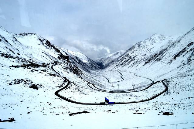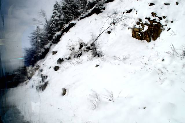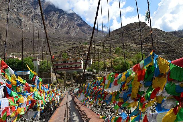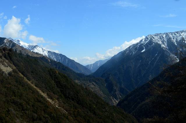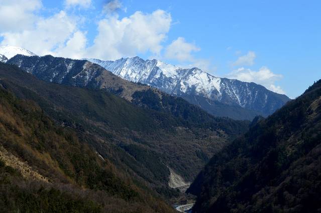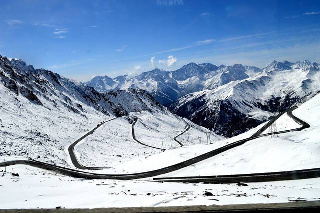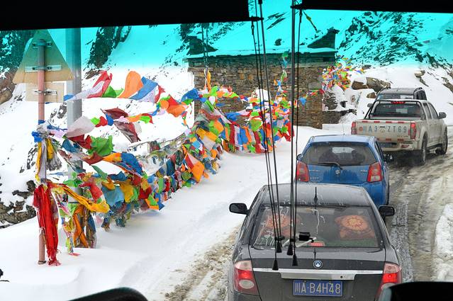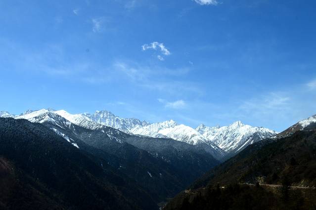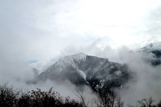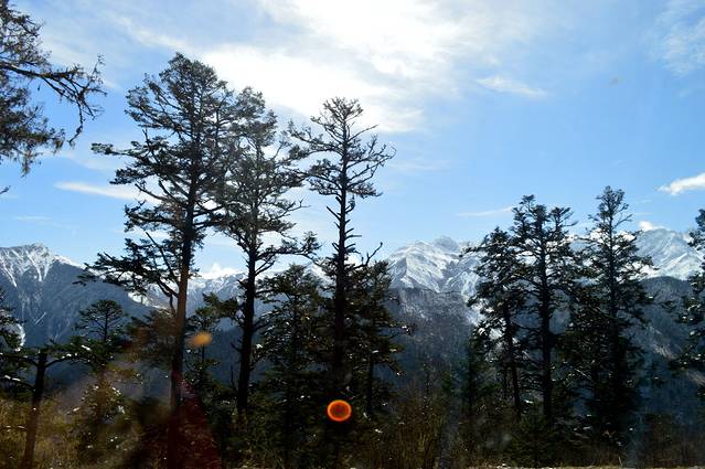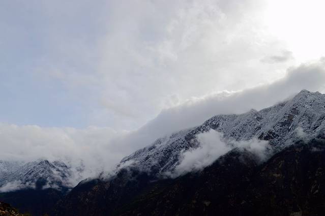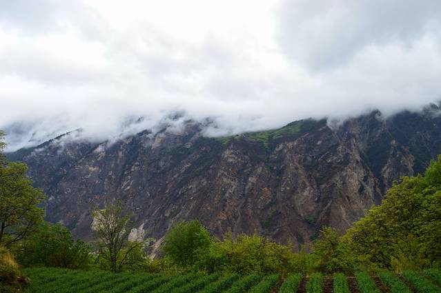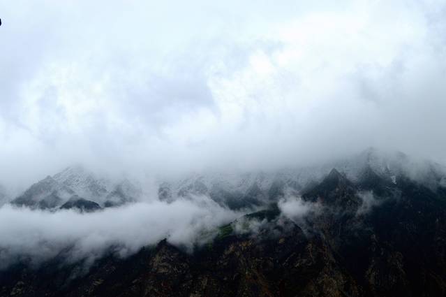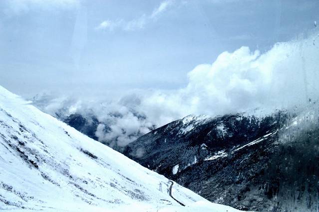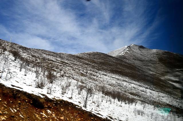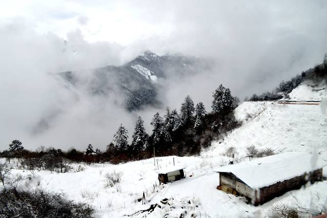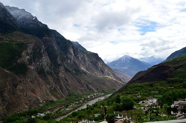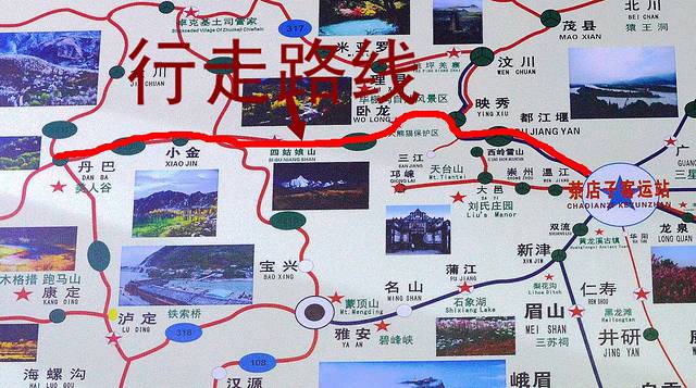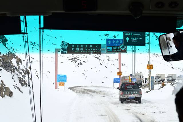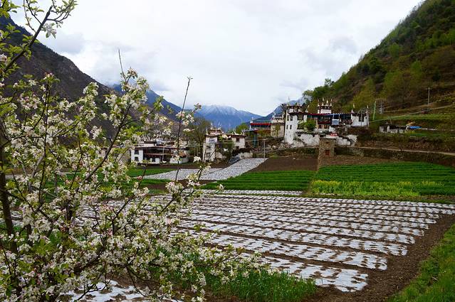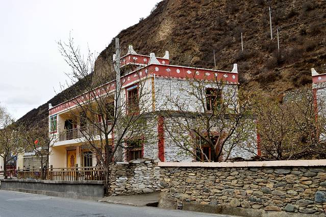 小金县(下山不像上山极速的下降耳朵出现翁鸣感 )~长坪沟(房子有很多具有民族特色的图腾花纹样式 慢慢的没有积雪了 从有雪路段到无雪路段将近3小时10:00-13:00 海拔直降到3000米)~猛固桥~双桥沟(从长坪沟到此 一路都有村民自己修建的房子及住宿)~小金(路边全是房子和桃花梨花 有点开繁了)~丹巴(进入边界缓缓出现红色岩石的山群 一路都有人家)