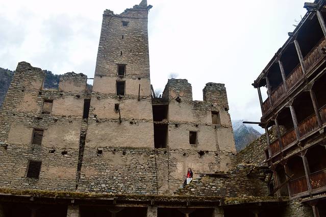 第二天:顺风车到土司官寨、游玩甲居(从甲居到官寨先是顺了一个法官的陀陀车他要去上班把我和小羊(深圳那女孩)放在了松光寺路口,然后走了一小节顺了一个成都老乡的路虎【太洋盘了】到美人谷饭店口,然后顺了一个面包车是要到马尔康的师傅 把我放在了土司官寨路标那里,刚好遇见一个摩托车师傅送一个老爷爷下来我就顺他的车上去了,他叫其米师傅,放下我的时候怕我下山不好走没车专门留了电话给我,人可好了。我进官寨玩拍照遇见了村长【后面我才知道的】带我去局长家吃的饭,喝了3大碗耗牛汤,还一路给我拍照解说官寨的历史。下官寨的时候其米师傅要5点才有空,我玩到2点,所以我自己走了一段刚好遇见拉水泥上来的拖拉机,顺着一路钭下去的到了官寨路标下车。走了一小段,顺了一个托石头的小卡车师傅刚好去甲居,我就回去了)