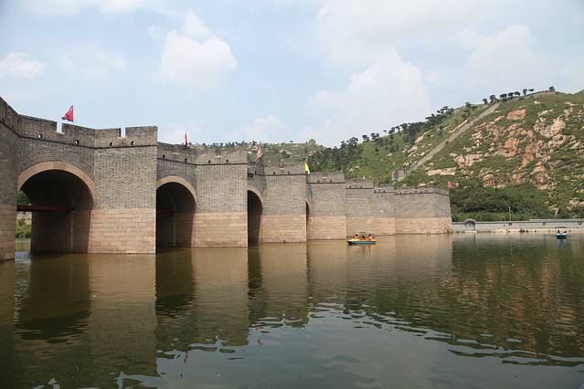 第一天询问了老板附近的景点,为了躲避高峰,7点吃了早饭就出门了。 从老板那里买了九门口的套票,60 这天比较郁闷的是百度地图如果导水上长城就会被误导,我们就是走了很多冤枉路。要去的话导九门口,自驾走址九线,从止锚湾特别顺当就到了。 在去的途中发现了银泰水星乐园和东戴河国际度假村,一片很大的海滩,那边也有很多住的地方,距离止锚湾也不远。不到四点在那玩了会,租了个橡皮船,100/4小时,由于已经不早了,跟人家商量了下,50/2小时。