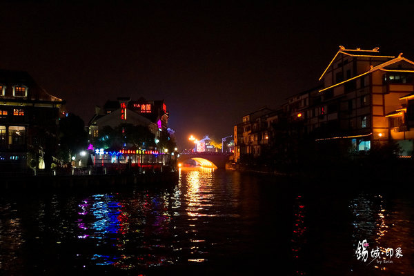 灯光恰到好处,没有太过耀眼,也足以映衬出水乡的夜景。