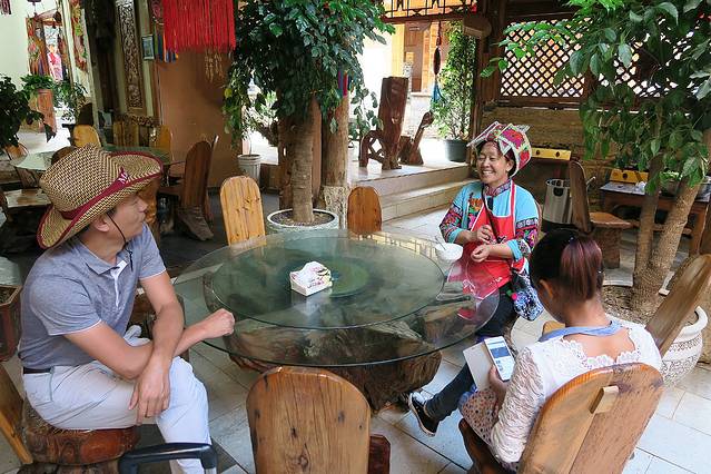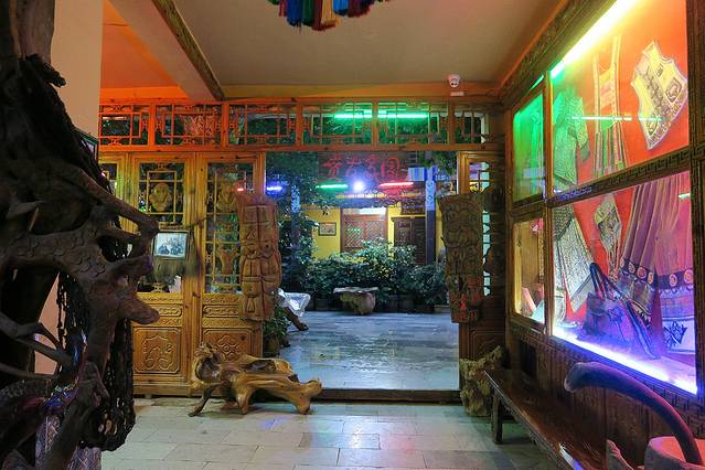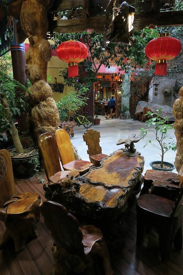 仙人洞村夜不闭户,除了超市,许多人家本就没有大门。店铺里木雕随处可见,随拾皆是,贲古家园的人告诉我,她们大堂里任意一张椅子,只是雕工就超过200,问她那根随意搁在楼梯扶手上的是什么价,她笑而不答。