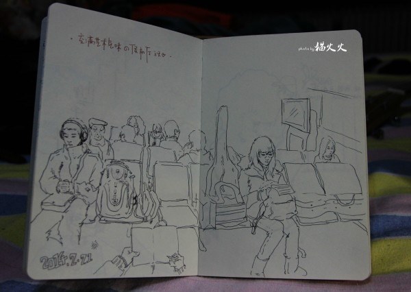 【候机厅】来早了候机,随手画画速写。。。对面也好文艺啊!!!!文艺小青年和文艺少女!赞