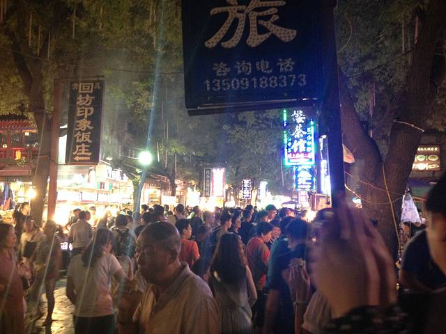 印象最深的就是回民街了,人山人海,比重庆磁器口,厦门中山路的人还要多,真是吓死爹了。人们如果要走的话,几乎就是前胸贴后背,摩肩接踵,毫不夸张的说。当然后来听说回民街也就是名气大,东西不是很好吃。这点我深深的表示赞同,凡是旅游景区,人一多的话,什么都会变味,好吃的东西由于产量太大,而变得不是那么好吃。由于当时刚下火车,饥肠辘辘,眼里冒金星啊,找吃的。好不容易找到一个孙家肉夹馍,索性买个饼吃吧。但是我看了排到几乎看不到的队伍,瞬间吃的兴趣就没了。。。最后找到一个老米家泡馍,点了份顶级羊肉泡馍,等了半个小时才吃到,已饿晕。