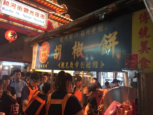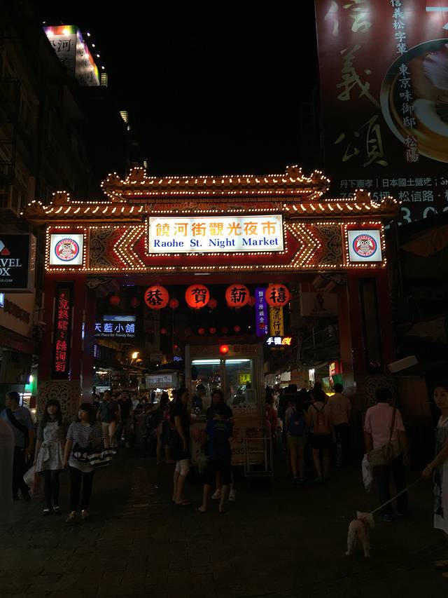 晚上实在不甘心就这样睡觉,跟团里的人相约去周围转转,打听到饶河夜市离我们酒店不远,我们跟另外一对情侣打车出发前往目的地—饶河夜市,吃好吃的去啦~