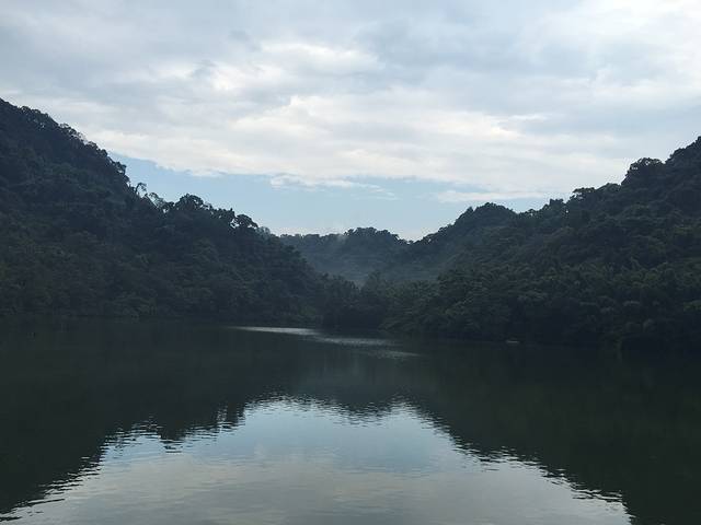 慈湖全景,虽然阴天,但是山峰、天空在湖中的倒影,相映成辉,很是美丽,更能展现出它的神秘感~