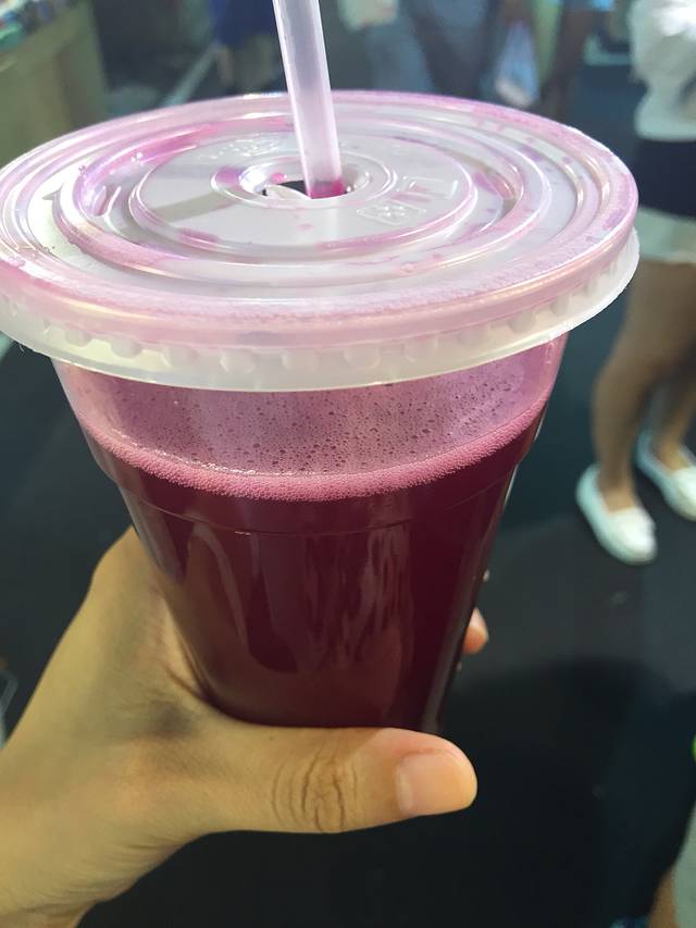 仙人掌果汁,很少见哦~从来没见过仙人掌果,以为是加色素的,其实是鲜榨的,味道酸酸甜甜,很好喝~