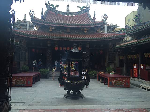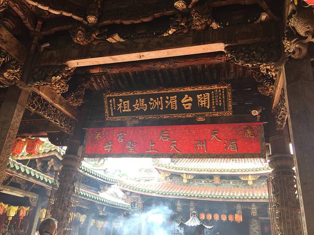 这就是鹿港妈祖庙,也叫天后宫~台湾人很爱拜拜,香火很旺哦~我们也请了香,拜拜妈祖娘娘,保佑我们顺顺利利,平平安安~