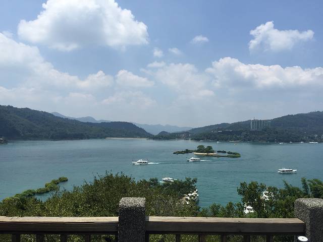 中午时分,我们抵达台湾著名的日月潭风景区,是台湾最大的淡水湖,北半湖形状如圆日,南半湖形状如弯月,日月潭因此而得名。